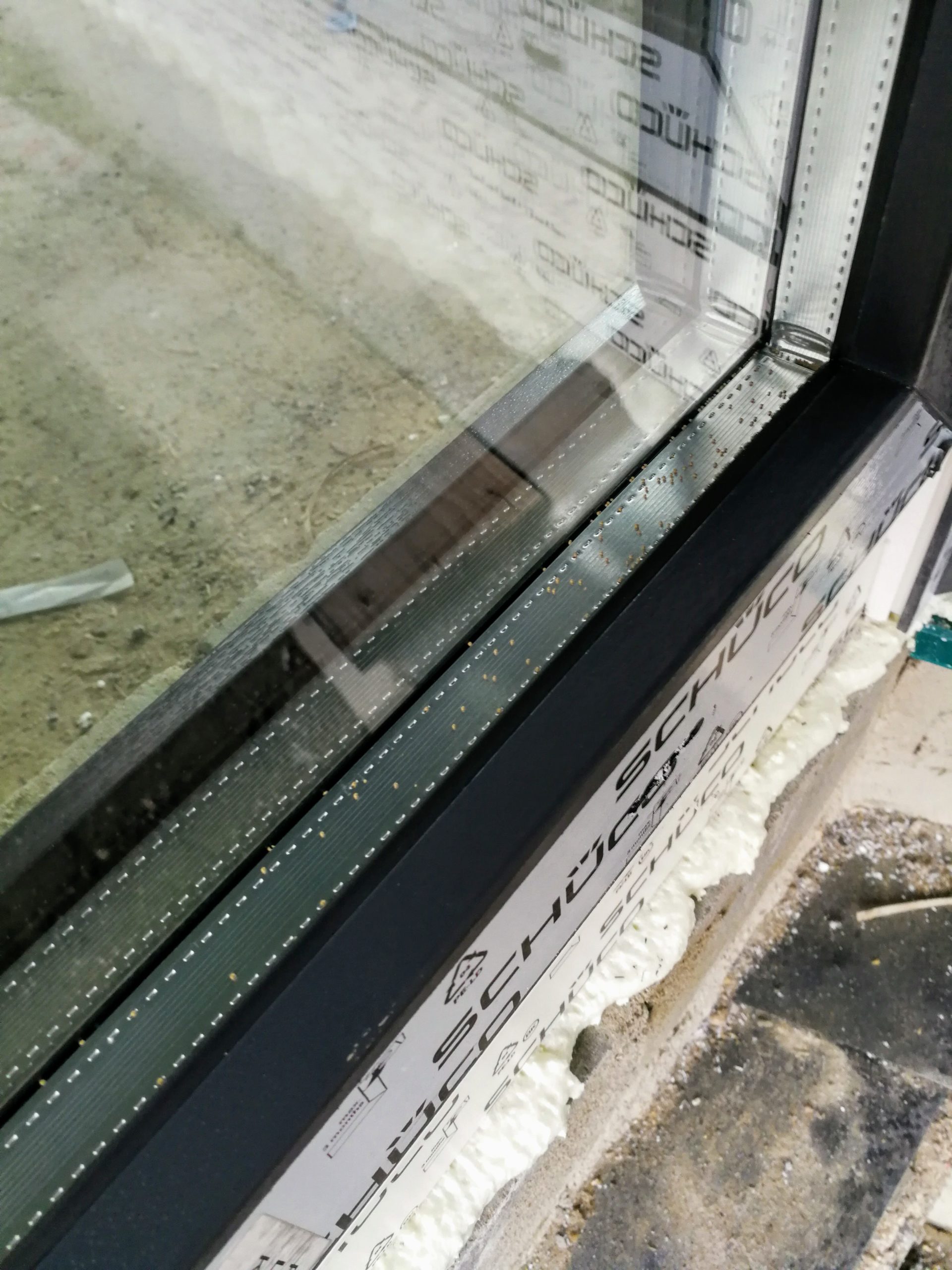- pęknięta jedna z szyb w oknie narożnym (widoczne podczas montażu, dlatego szybę szybko zamówiono i wymieniono).