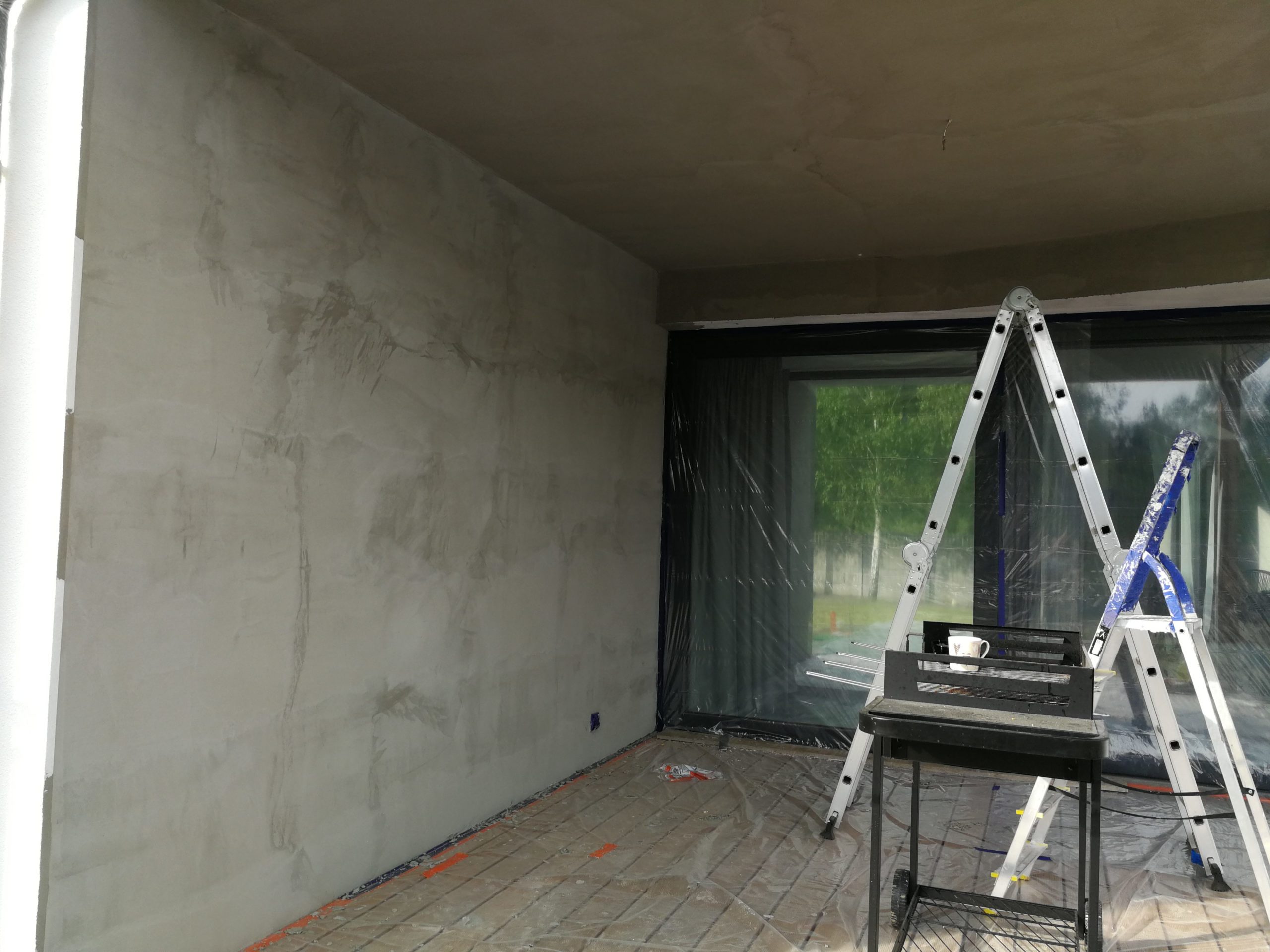 Pierwsza część została przygotowana przez ekipę, która robiła nam tynki. Na ścianach było już wykonane ocieplenie styropianem 18cm, wraz z siatką z klejem.